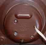 From the rear the two identification features are the combined handset and starting knob, in bakelite for this movement, which is situated close to the connector, and the connector itself, which is able to swivel a little for convenience in assembly.